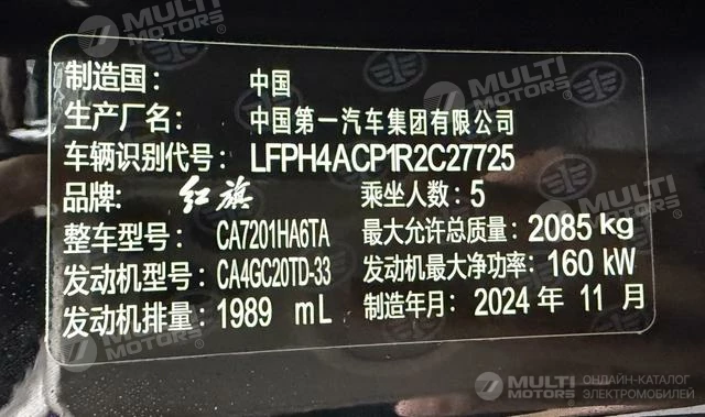 ОБЩИЕ ХАРАКТЕРИСТИКИ Hongqi H5 2025 (13000 км)