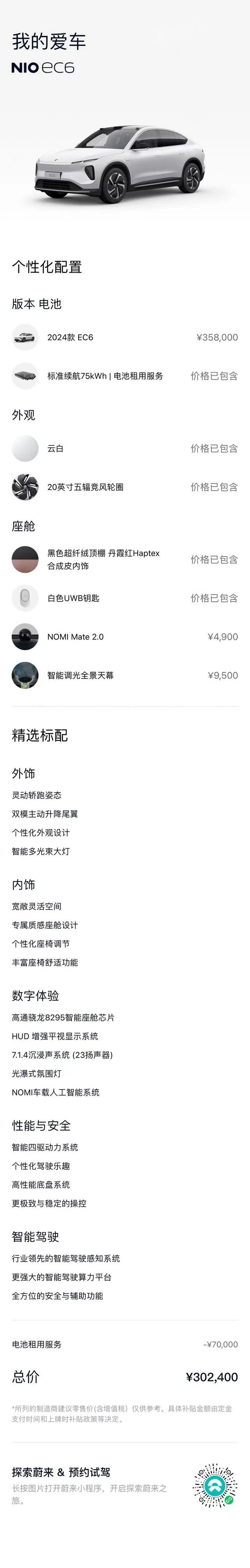 ОБЩИЕ ХАРАКТЕРИСТИКИ NIO EC6 2024 (26000 км)