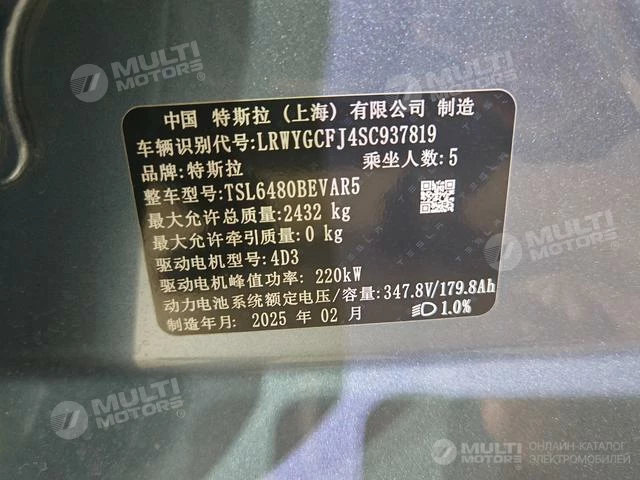ОБЩИЕ ХАРАКТЕРИСТИКИ Tesla Model Y 2025 (8500 км)