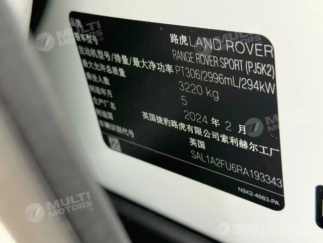 ОБЩИЕ ХАРАКТЕРИСТИКИ Land Rover Range Rover Sport 2024 (7000 км)