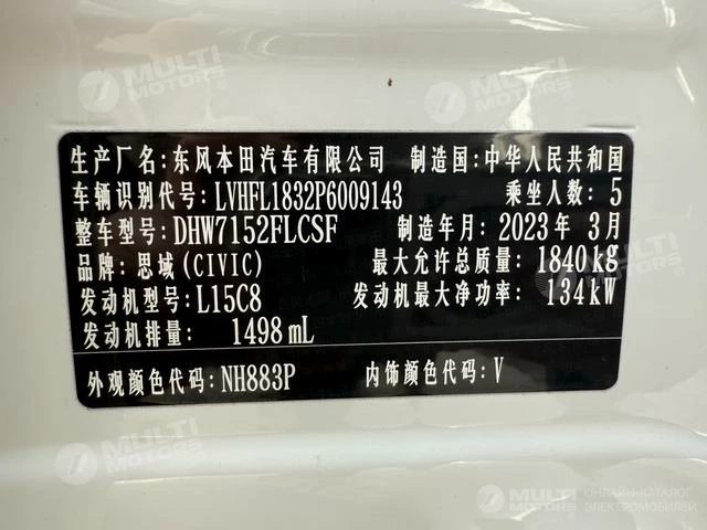 ОБЩИЕ ХАРАКТЕРИСТИКИ Honda Civic 2023 (32000 км)