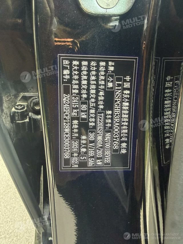 ОБЩИЕ ХАРАКТЕРИСТИКИ Xpeng P7 2024 (37000 км)
