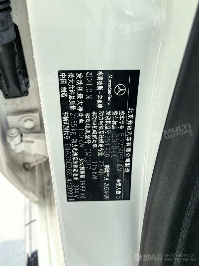 ОБЩИЕ ХАРАКТЕРИСТИКИ Mercedes-Benz C-class PHEV 2024 (19000 км)
