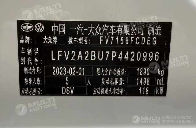 ОБЩИЕ ХАРАКТЕРИСТИКИ Volkswagen Sagitar 2023 (58000 км)