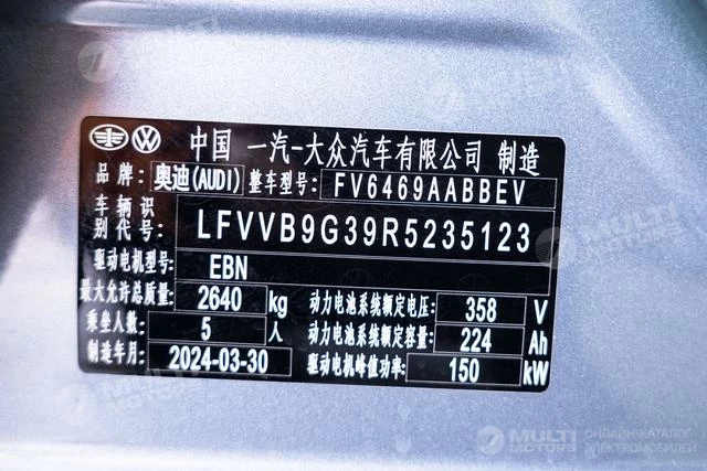 ОБЩИЕ ХАРАКТЕРИСТИКИ Audi Q4 e-tron 2024 (17800 км)