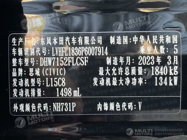 ОБЩИЕ ХАРАКТЕРИСТИКИ Honda Civic 2023 (37100 км)