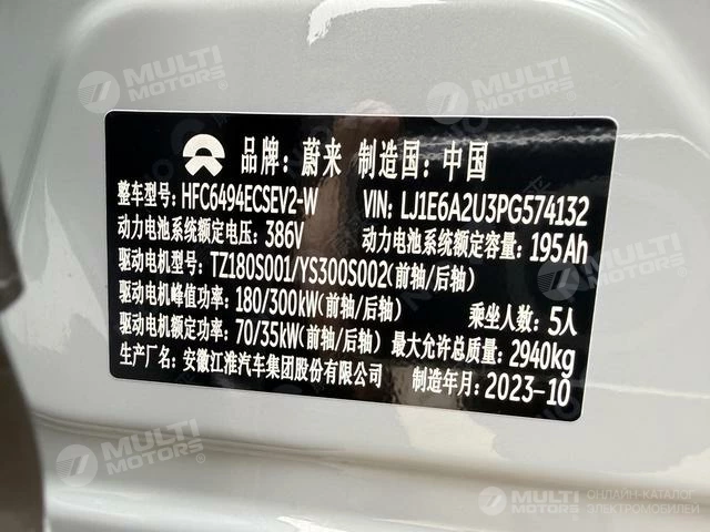 ОБЩИЕ ХАРАКТЕРИСТИКИ NIO EC7 2023 (61000 км)