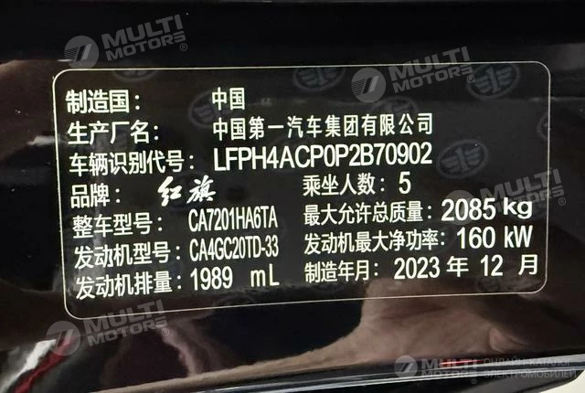 ОБЩИЕ ХАРАКТЕРИСТИКИ Hongqi H5 2024 (12000 км)