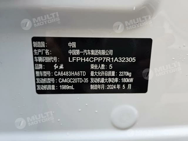 ОБЩИЕ ХАРАКТЕРИСТИКИ Hongqi HS5 2023 (18000 км)