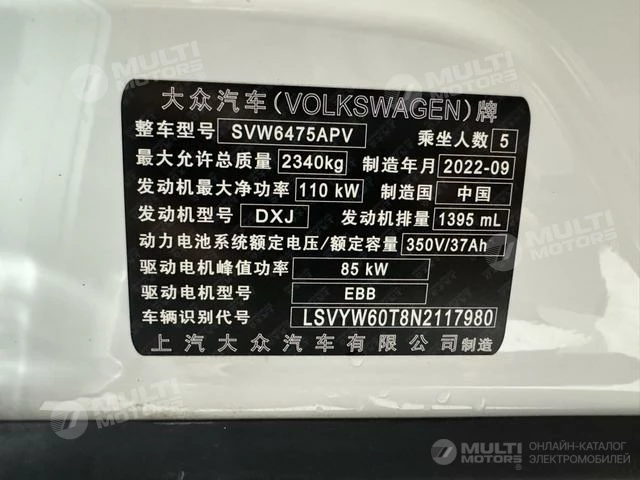 ОБЩИЕ ХАРАКТЕРИСТИКИ Volkswagen Tiguan L PHEV 2023 (20000 км)
