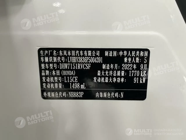 ОБЩИЕ ХАРАКТЕРИСТИКИ Honda XR-V 2023 (20000 км)