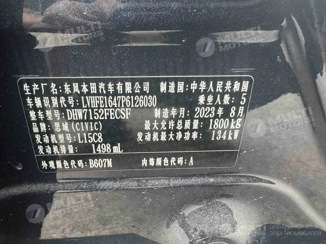 ОБЩИЕ ХАРАКТЕРИСТИКИ Honda Civic 2023 (37000 км)