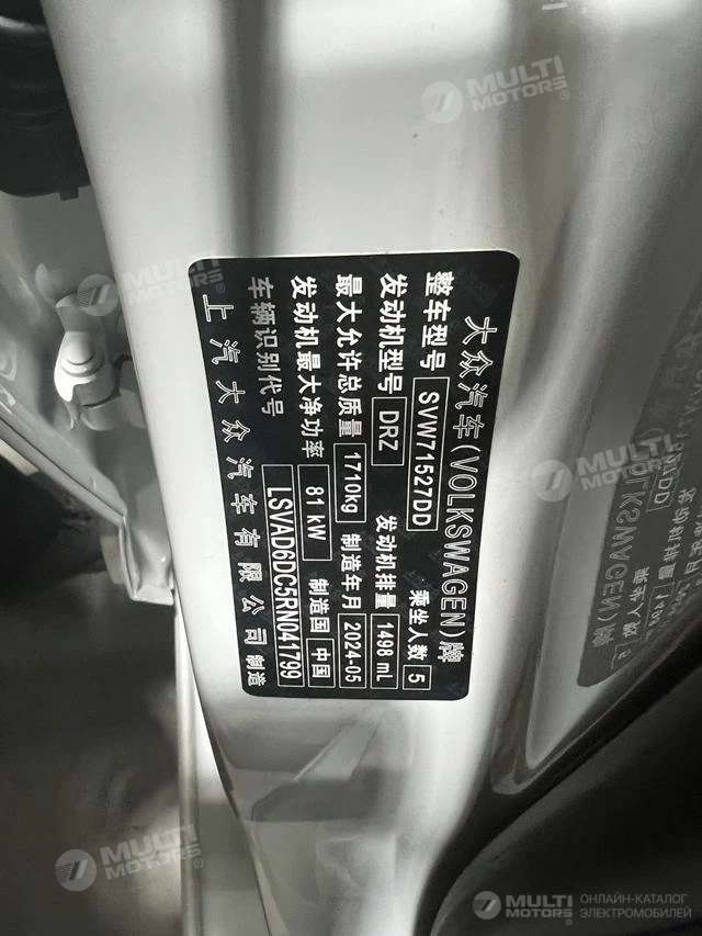 ОБЩИЕ ХАРАКТЕРИСТИКИ Volkswagen Lavida 2025 (10000 км)