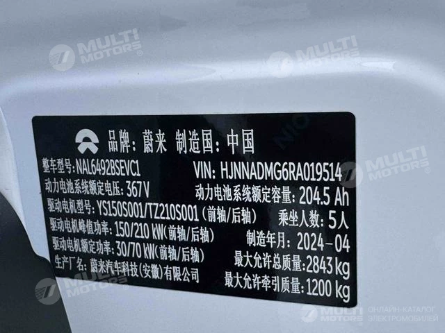 ОБЩИЕ ХАРАКТЕРИСТИКИ NIO ES6 2024 (42200 км)
