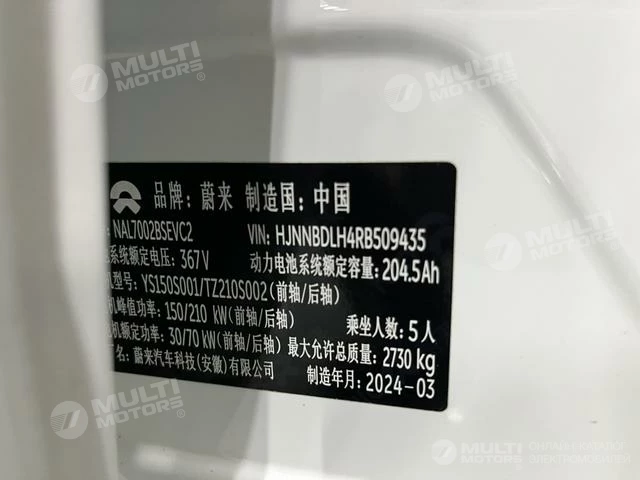 ОБЩИЕ ХАРАКТЕРИСТИКИ NIO ET5T 2024 (34000 км)