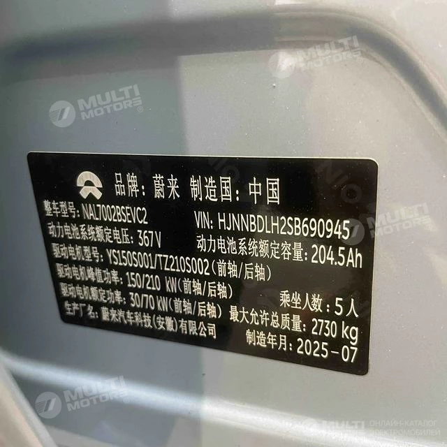 ОБЩИЕ ХАРАКТЕРИСТИКИ NIO ET5T 2025 (29400 км)