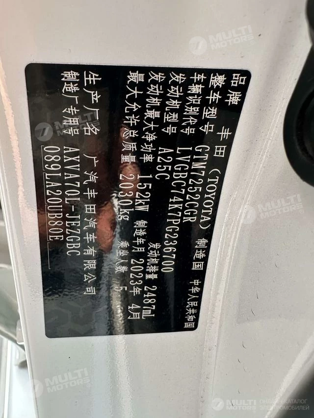 ОБЩИЕ ХАРАКТЕРИСТИКИ TOYOTA Camry 2023 (33500 км)