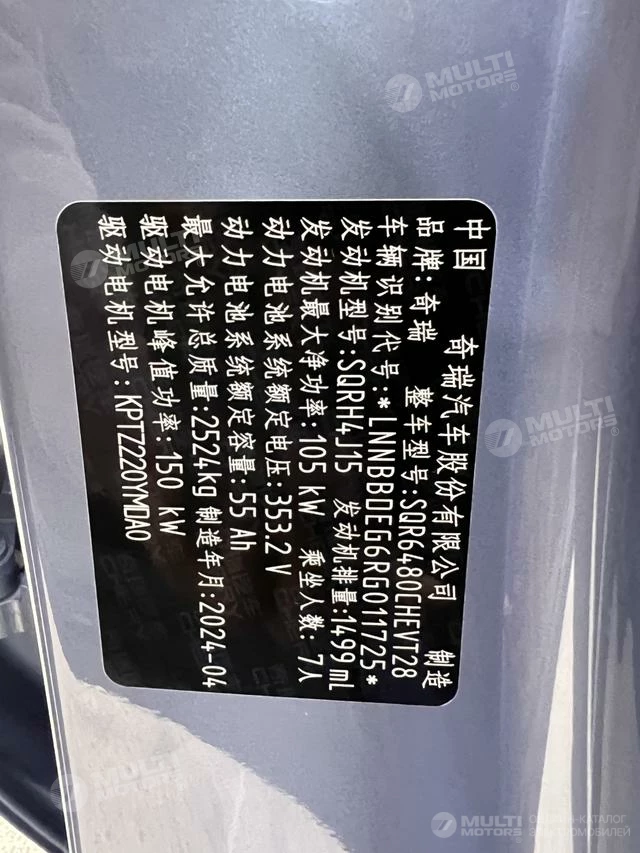 ОБЩИЕ ХАРАКТЕРИСТИКИ Chery T9 2024 (9700 км)
