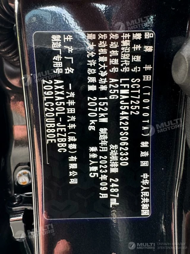 ОБЩИЕ ХАРАКТЕРИСТИКИ TOYOTA Avalon 2023 (26000 км)