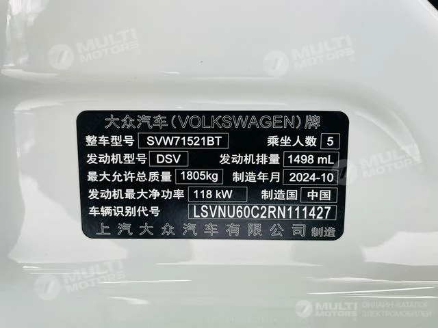 ОБЩИЕ ХАРАКТЕРИСТИКИ Volkswagen Lavida 2024 (1200 км)
